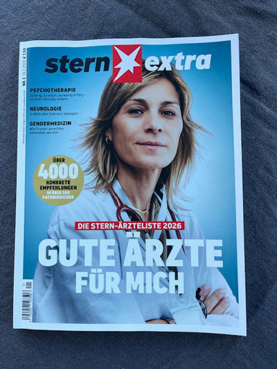 Ganz großartig, was die Journalistin Constanze Löffler und der Fotograf Sebastian Wolf da auf die Beine gestellt haben. Einen ganzen Tag waren sie in unserer Praxis zu Gast, haben uns über die Schultern geschaut, beim Arbeiten beobachtet, mit Ärztinnen und Patienten gesprochen. Sie haben mitbekommen, was es heißt, an vorderster Front der Schmerzmedizin und Schmerzversorgung zu stehen. Herausgekommen ist ein sehr gelungener sechsseitiger Artikel im stern extra – Gute Ärzte für mich, der Mitte Februar erschienen ist.